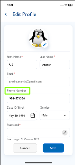1.The Mobile Number field heading should change to 'Phone Number'
