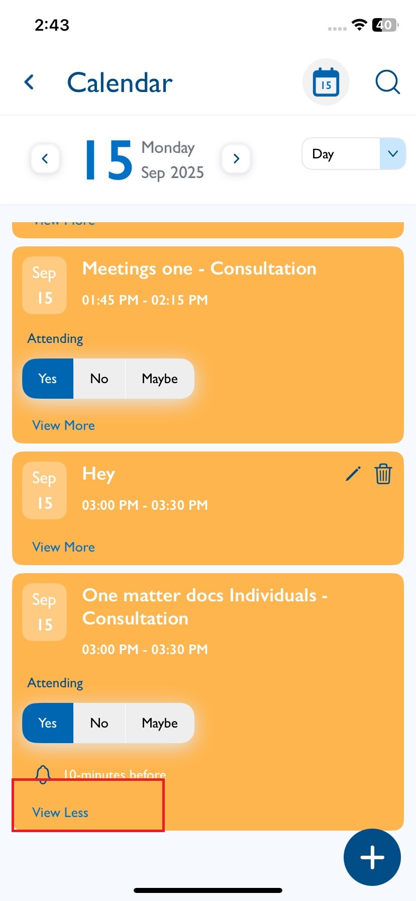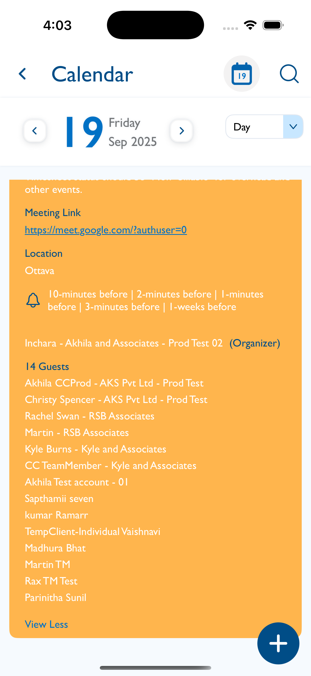 - Tap View More to view the meetings created from Lauditor Web.