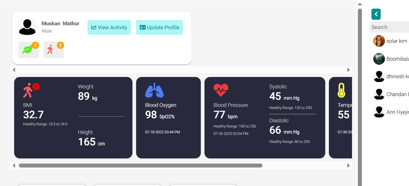Expected : Both sections should remain synchronized, ensuring consistency of user health data.