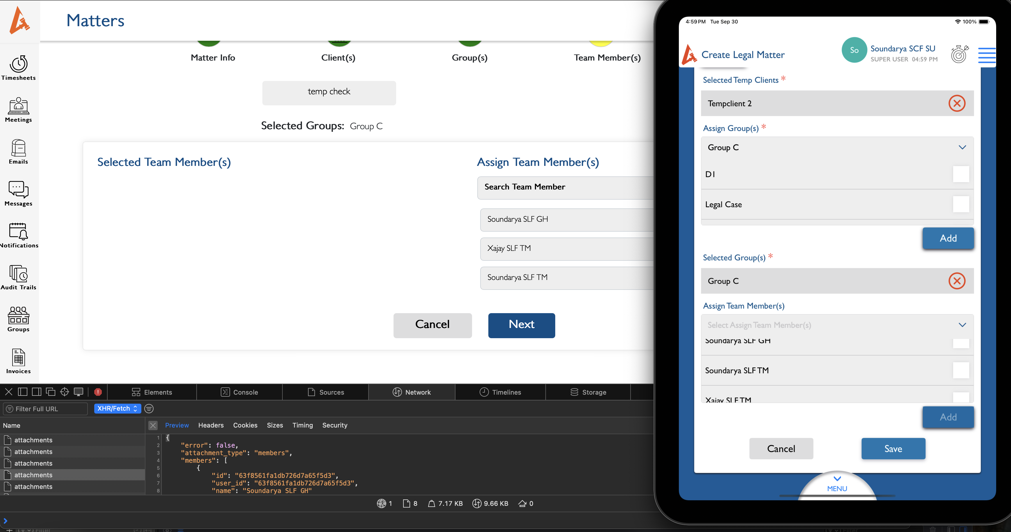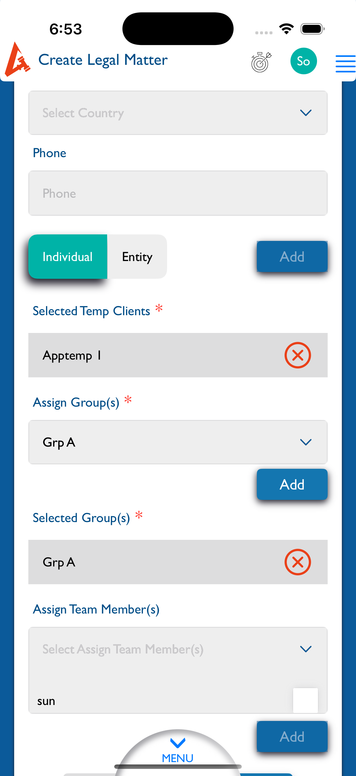 Note: If TM or GH creates the matter, Team member drop down should be populated with all group related members.