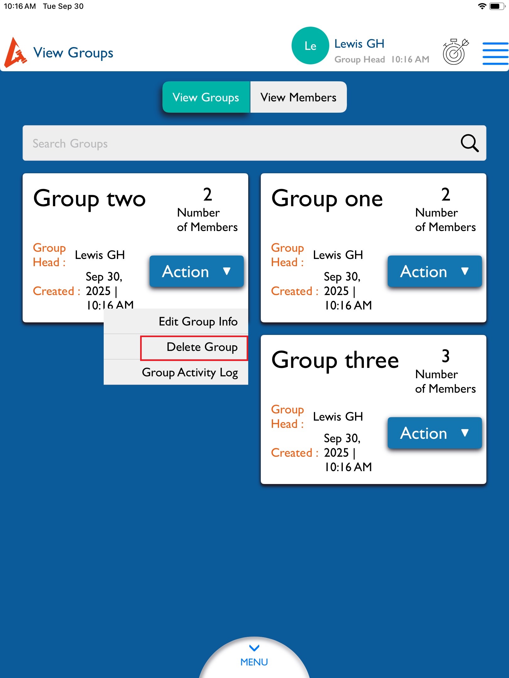 • Click on "View Groups" and select any group.