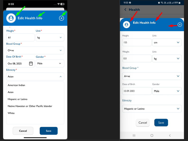 openHealth info page:- Add Health info page UI Changes