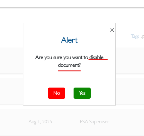 openDocument listing page - Enable and Disable document icon is not properly functioning and text correction in tool tip and Alert