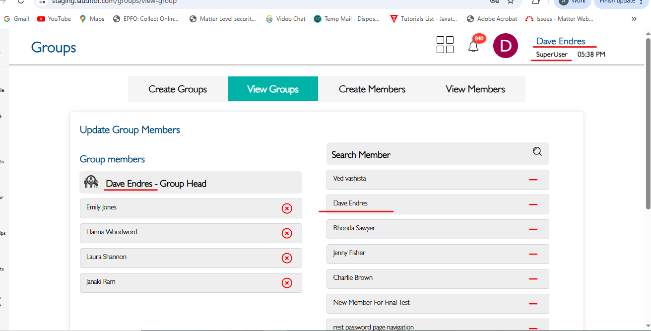 closedView Groups - Update Group Member list : The group head is added automatically to the left side when clicking Save, when adding all members to a group.