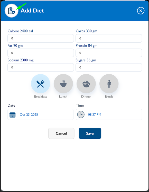 - The icon in the Add Diet screen should be updated to match iOS design.