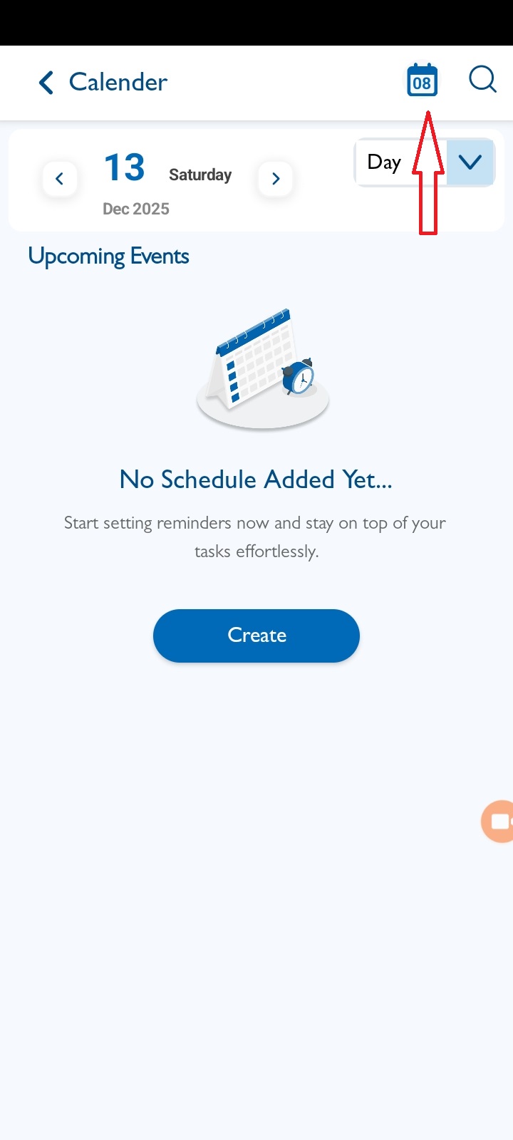 - Click on the Calendar icon at the top-right corner.