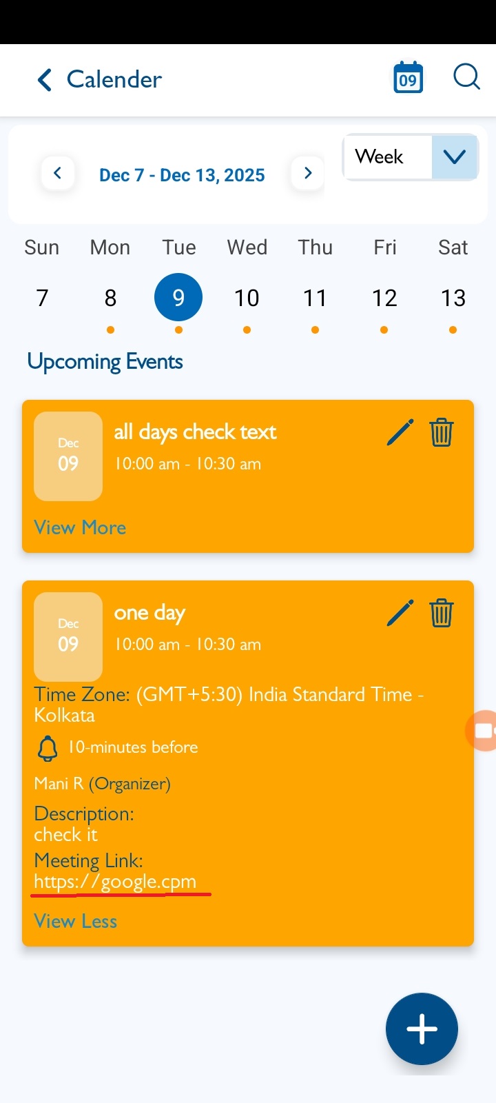 - The meeting link displayed should be clickable (hyperlinked), but it is currently not hyperlinked.