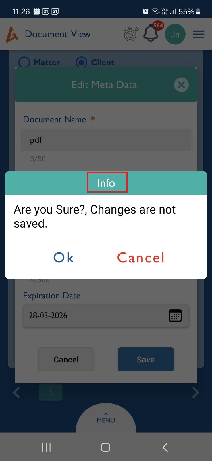 openDocument Edit meta data - Cancel Alert - Label change form "Info" to "Alert"
