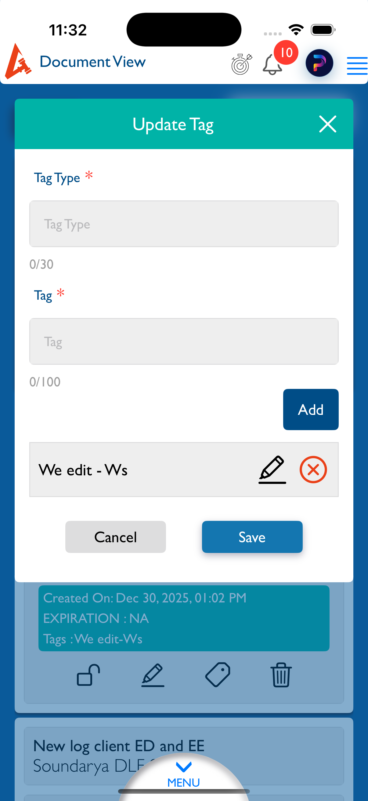 - Click on Tags again (or click Edit under Tags for a newly uploaded document).