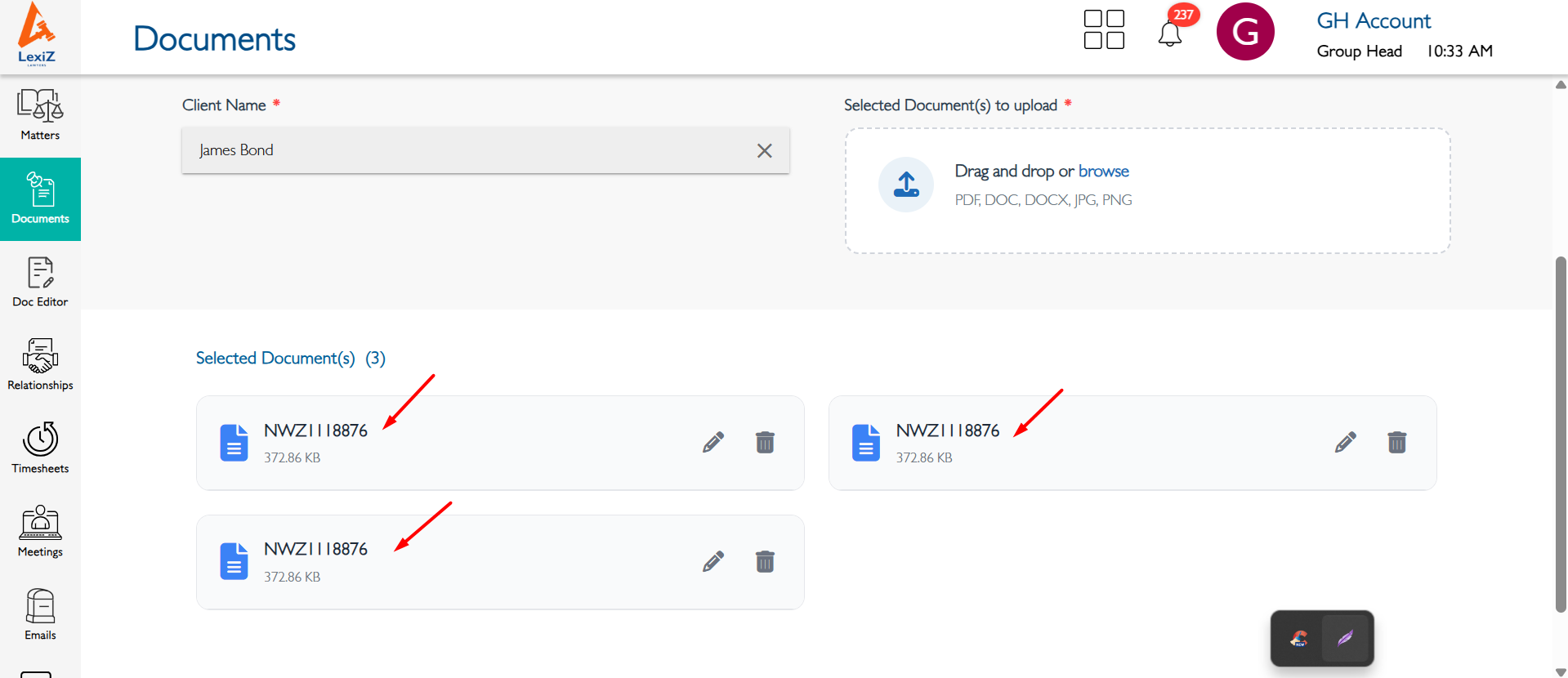 Documents(Upload):- When the same document is uploaded multiple times, the document name should be automatically renamed with suffixes such as 1, 2, 3, respectively.
