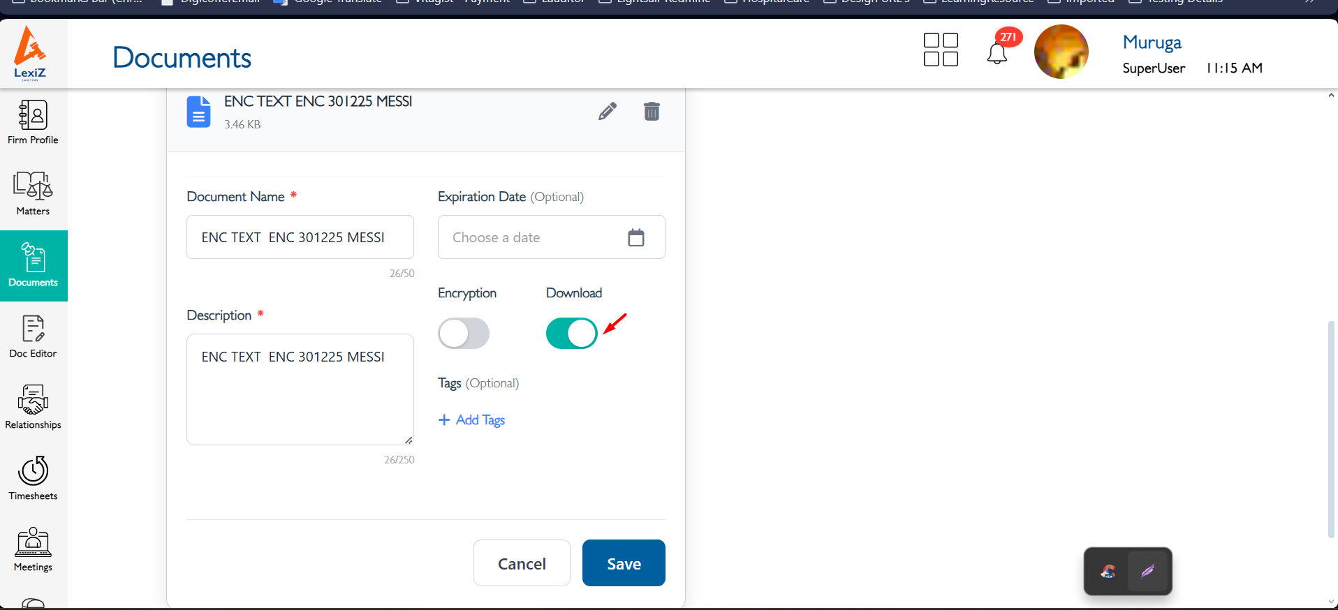 closedDocuments (Upload):- During the document upload the Enable Download option is highlighted by default.