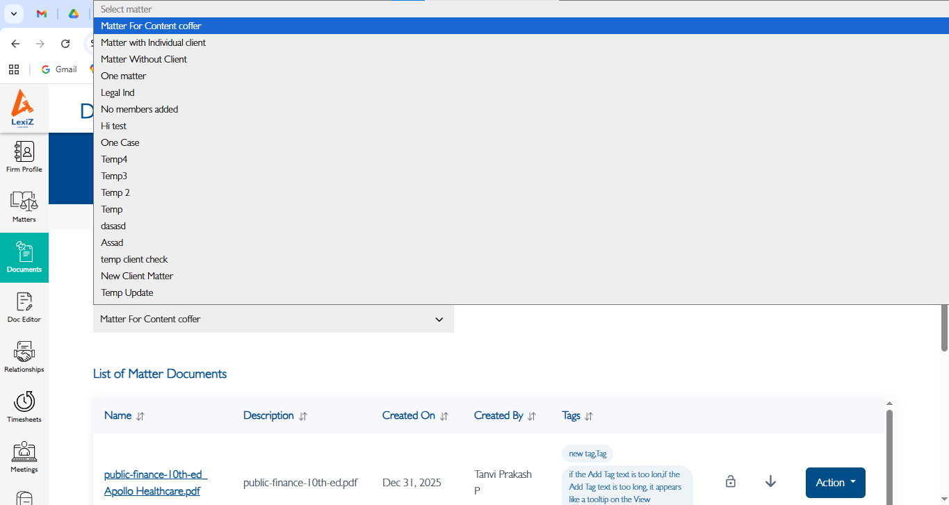 closedDocument Upload /View listing page - Matter - If the matter drop down has big list, The list go beyond the screen (upwords)
