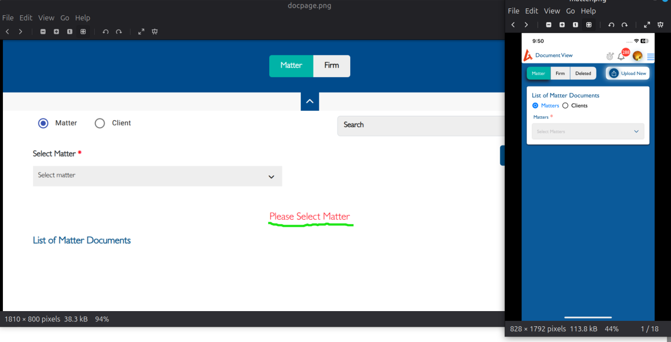 An alert message “please Select Matter” should appear ,as it does in the web version