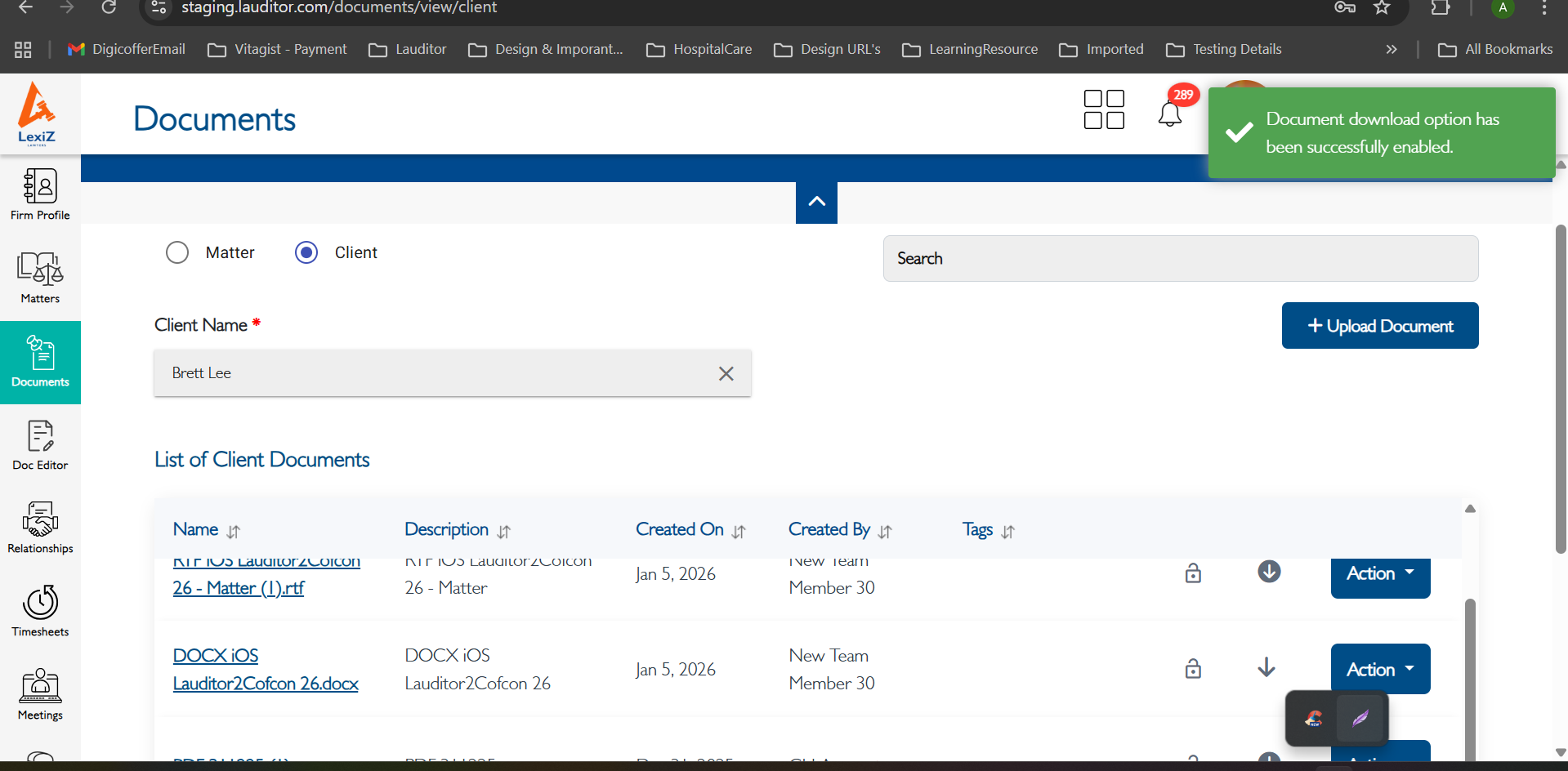 The toast message should display:”Document option is successfully enabled/disabled”.