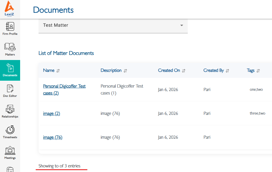 openDocument listing page - Bottom of the page - - "Showing to of y entries" should be changed to "Showing x of y entries" Where x is number of documents per page Where y is total number of documents