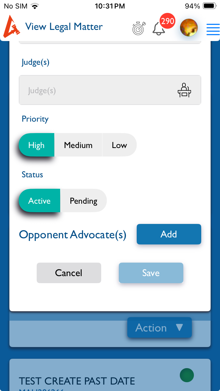 4.Select any one of the Legal Matter