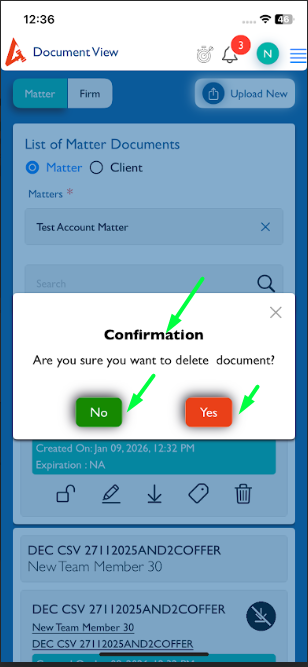 Note:- After deleting the document click on yes button. there is an alert pop-up will appear. the heading should change to Success.