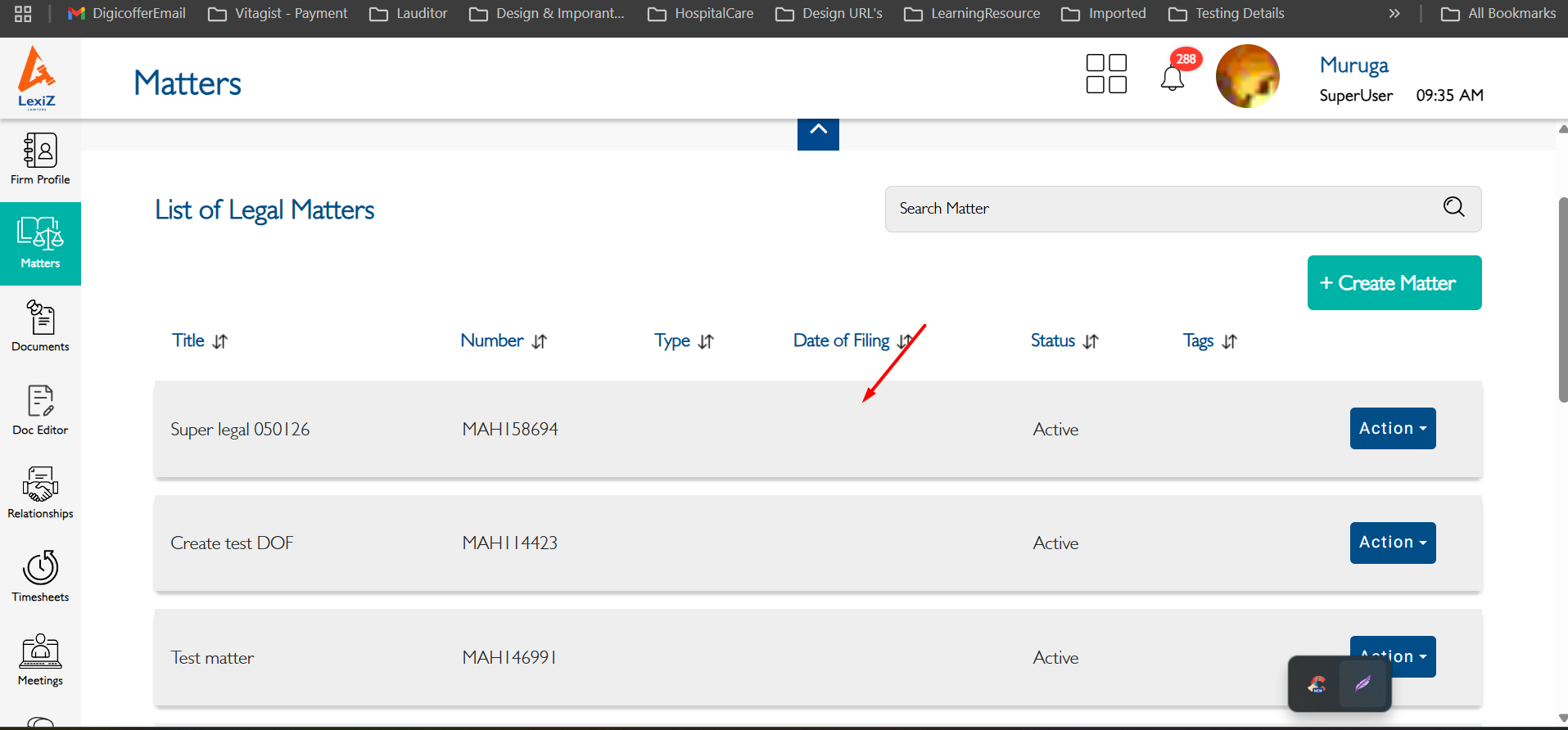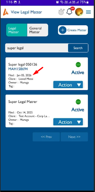 openMatters(View - Legal/General):- The date of filing date automatically filled, it shouldn't happen as per web