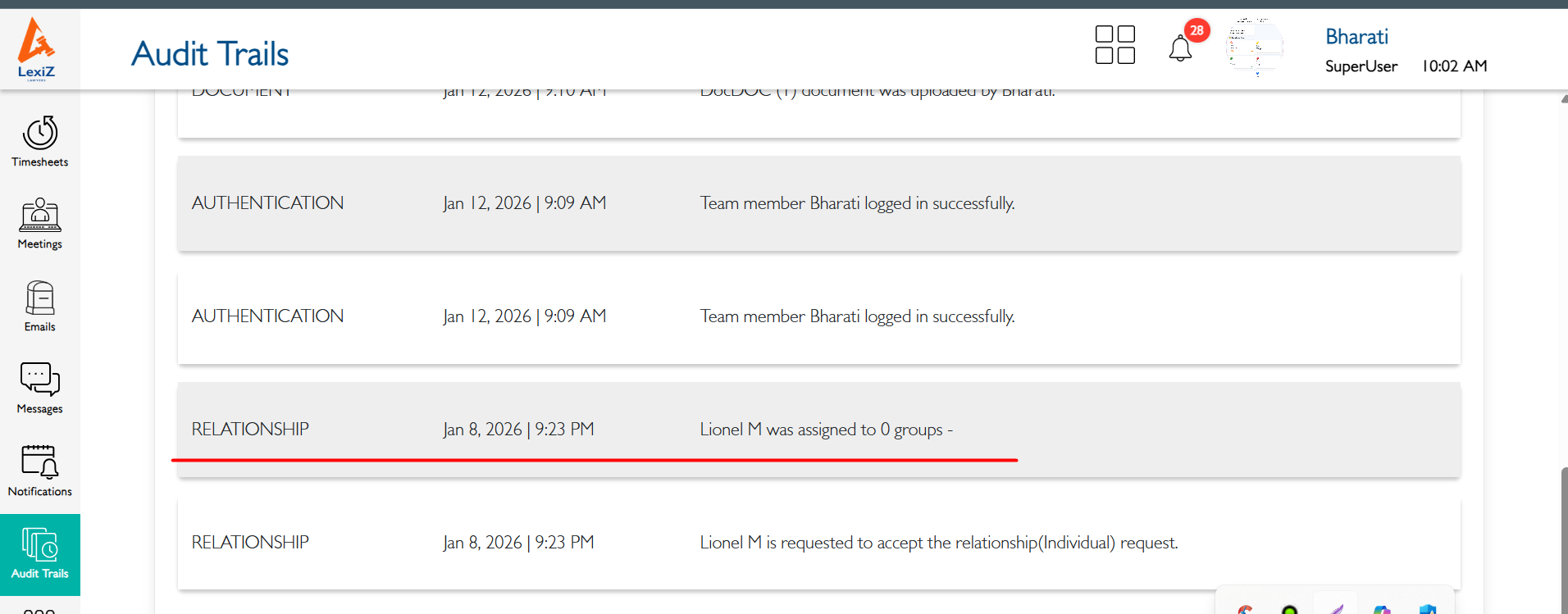 closedExtra audit trail entry is created when sending a relationship request
