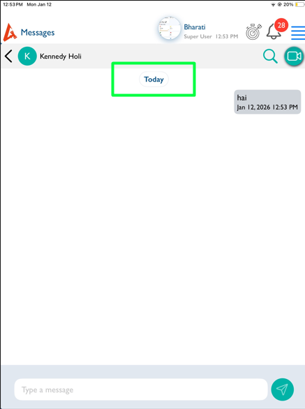 openMessage: When a message is sent or received, the message window displays the ‘Today’ label text as per iOS, but it now shows the same date twice on the same page.