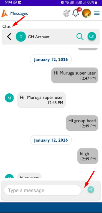 openChat (Message input box):- Type a Message box and send icon should be aligned properly,