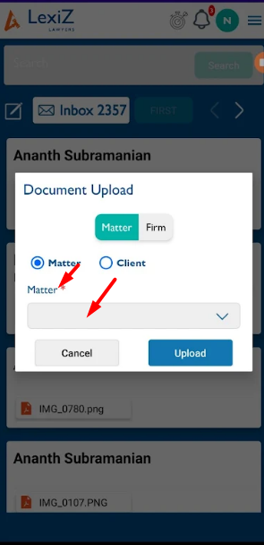 2.Hint text should be displayed on dropdown 'Select Matter' as per iOS