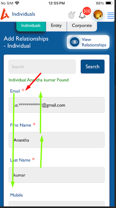openRelationships(Add) : The email fields order should match as per web, in add relationships individual request page.