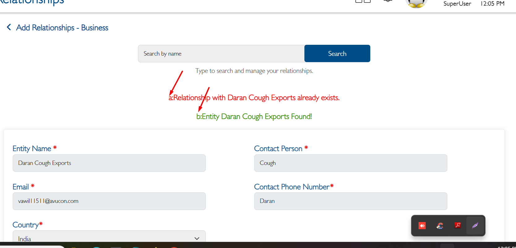 1.Entering Entity name in search bar, an valid prefix text 'a' will appear