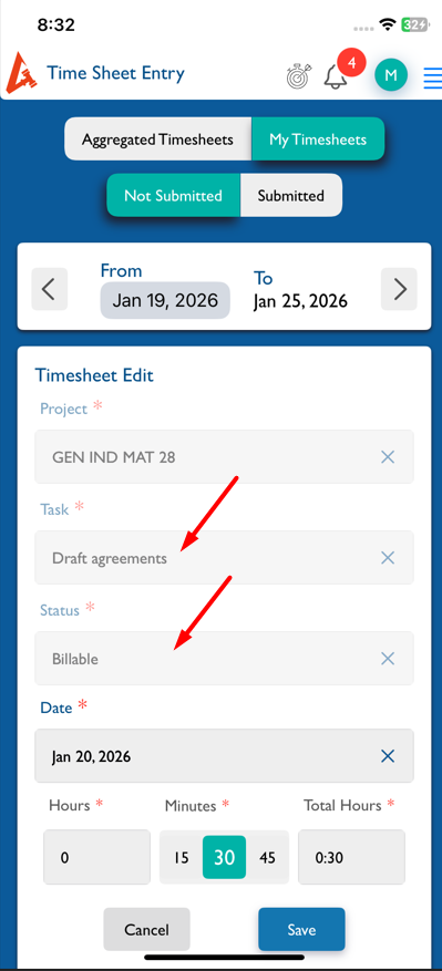 closedTimesheets(View):- When try to edit the Existing entries , the Task and status fields should be editable as per web