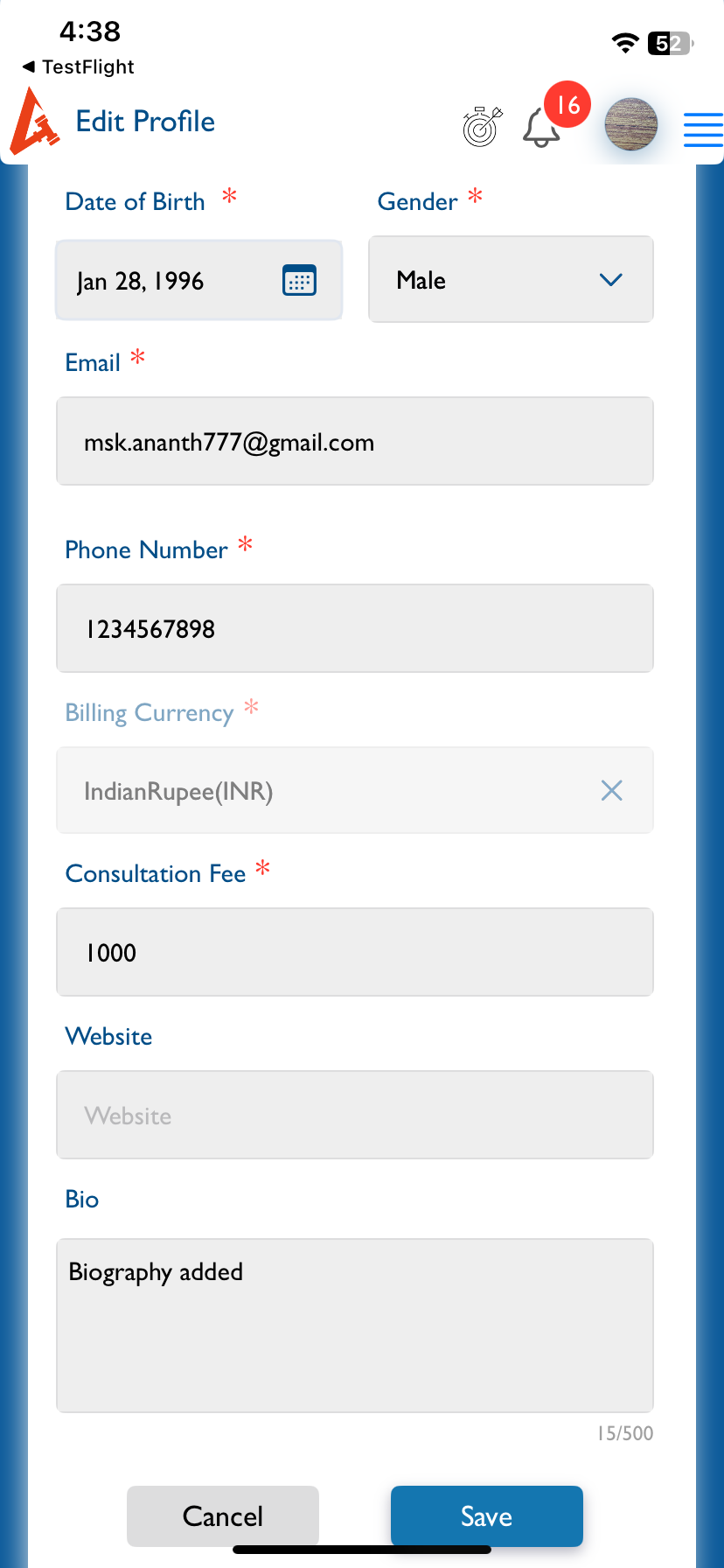 When editing the profile, billing currency, Nationality, Country field is not visible. They should be displayed and become non editable [Please refer web]