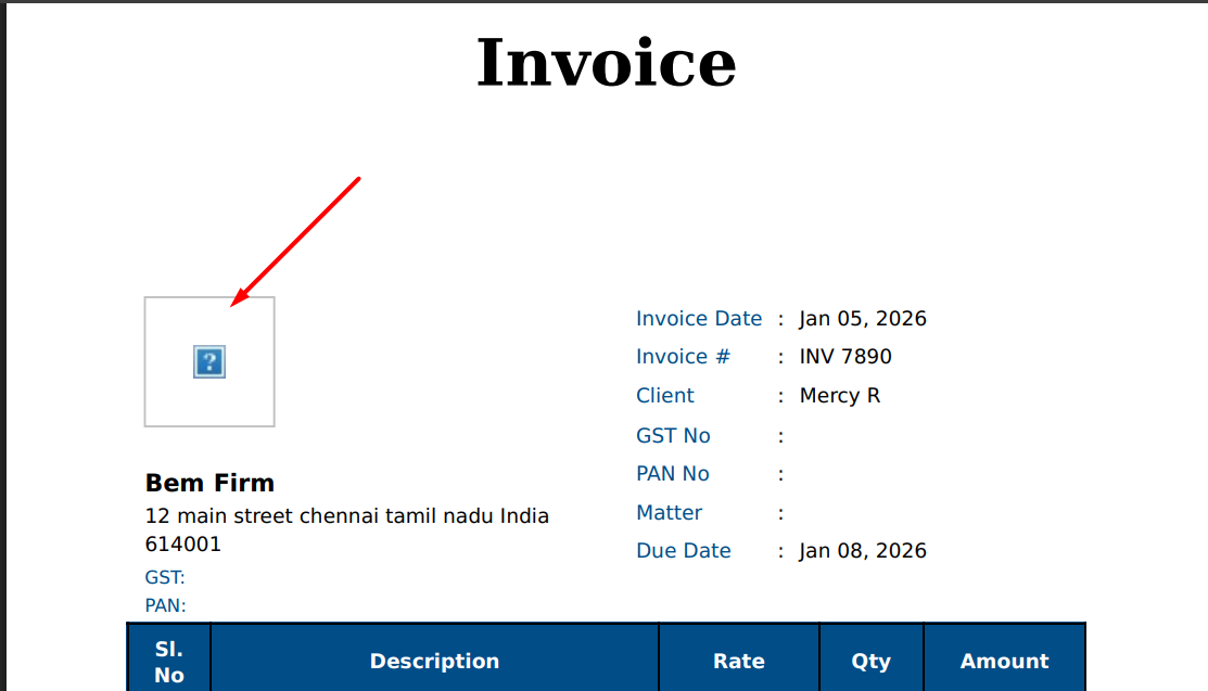 Download Invoice - Downloaded invoice shows broken image icon when no logo is uploaded