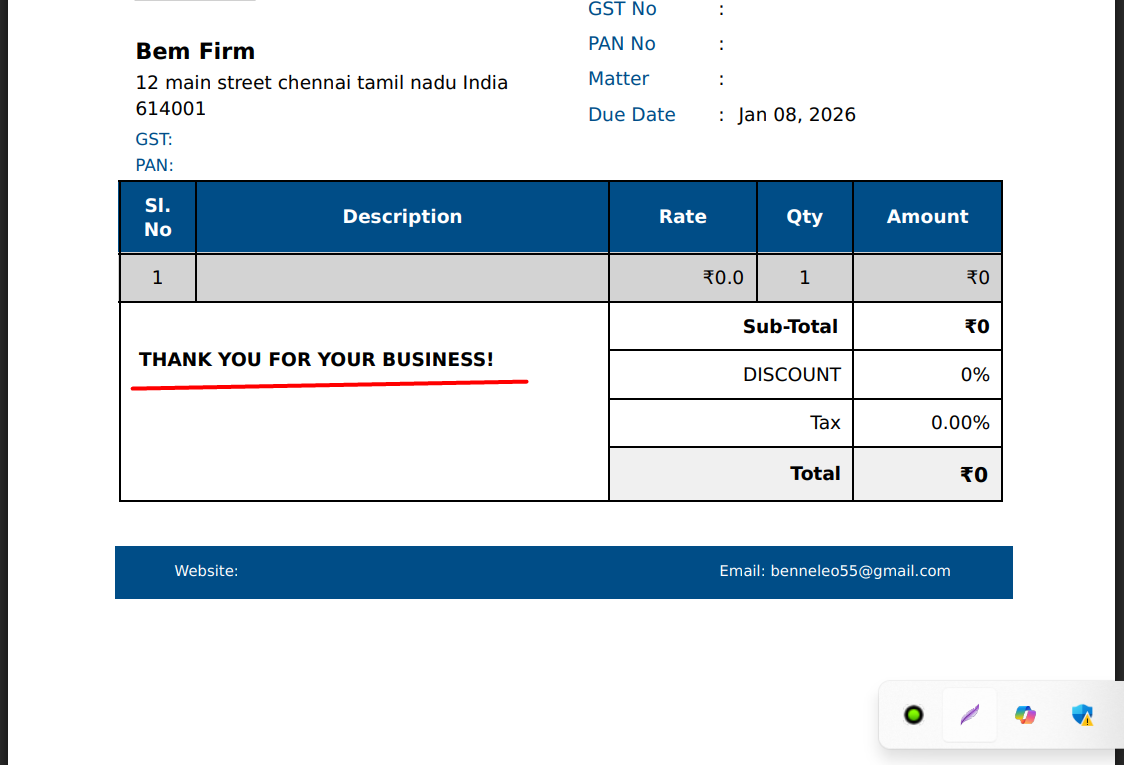 Download invoice - “THANK YOU FOR YOUR BUSINESS” text should appear out of the box in invoice pdf