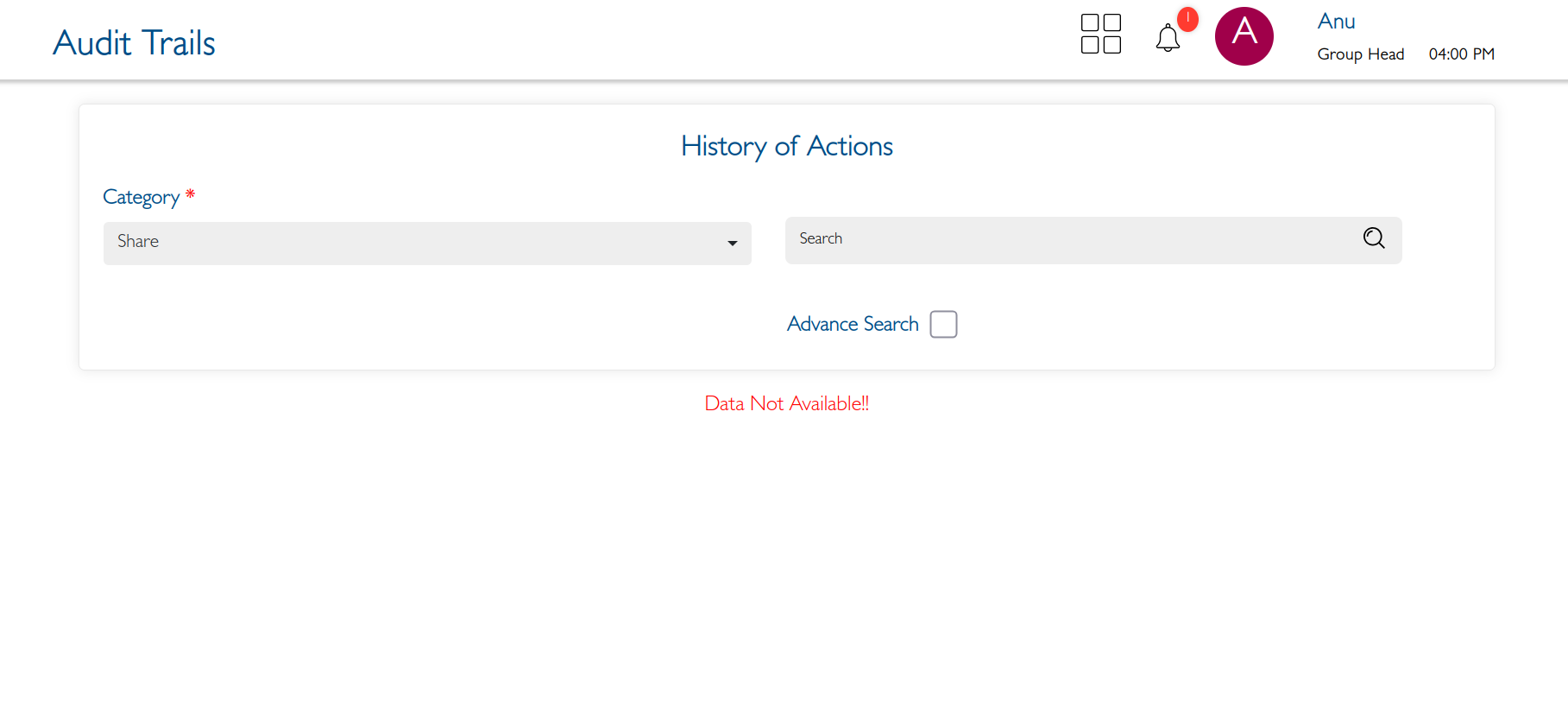 No Audits are captured under share category if any documents are shared with client