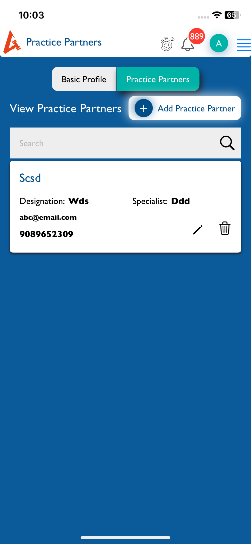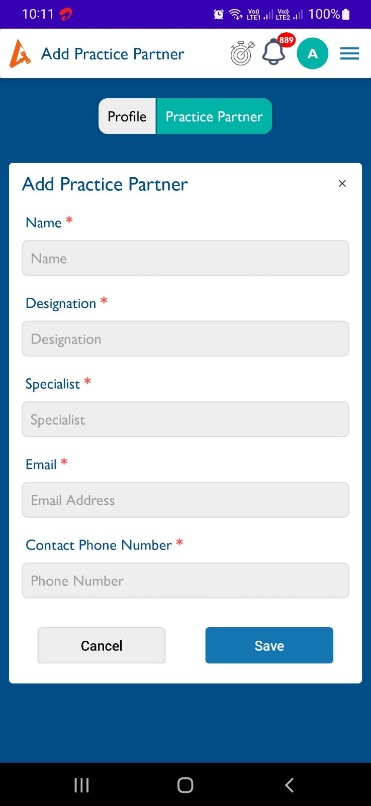 openFirm Profile(Practice partners):- Current page details are missing in Add and View Practice partner page