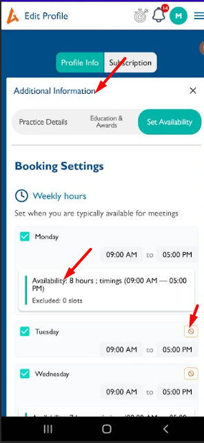 openProfile (Set Availability): UI Changes on Slot booking page